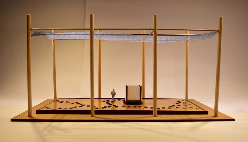 Visitors can walk on a stepping stones in a pool filled with water to finally enter the cubical structure where all the magic happens. Reflected light form the outside of the pool projects the wave pattern on the translucent walls of the cube. The well inside creates a projection of water ripples onto suspended sail, giving a way for visitors to interact and play their own music. The project was entirely designed, developed, organized and executed by me and 2 of my groupmates and have met with big praise from the public